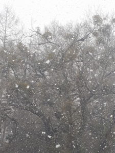 写真の白いのが雪です。大きな雪が短時間に何度も降りました。