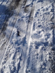 おはようございます。 今日の天気は晴れ☀8時前の気温は1℃でした。 昨晩また雪が降ったようで、今朝も2cmほど積もっていました。 木々にも雪がかかり、また冬が戻ってきた感じがします。 そして今朝の道路の様子です。 アイスバーンの上に雪が積もっているので滑りやすくなっています。 天気がいいのでこれから溶けてくると思いますが、お越しの際はどうぞお気をつけください。 ← 久しぶりの雪 今日も雪です。 →