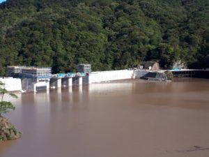 バンジージャンプをしていた橋も水がかなり来ていて、台風の威力を物語っています。