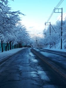 国道にはあまり雪が残っていなかったのでスムーズに運転できましたが、日陰になっている所はやはり凍結していました。